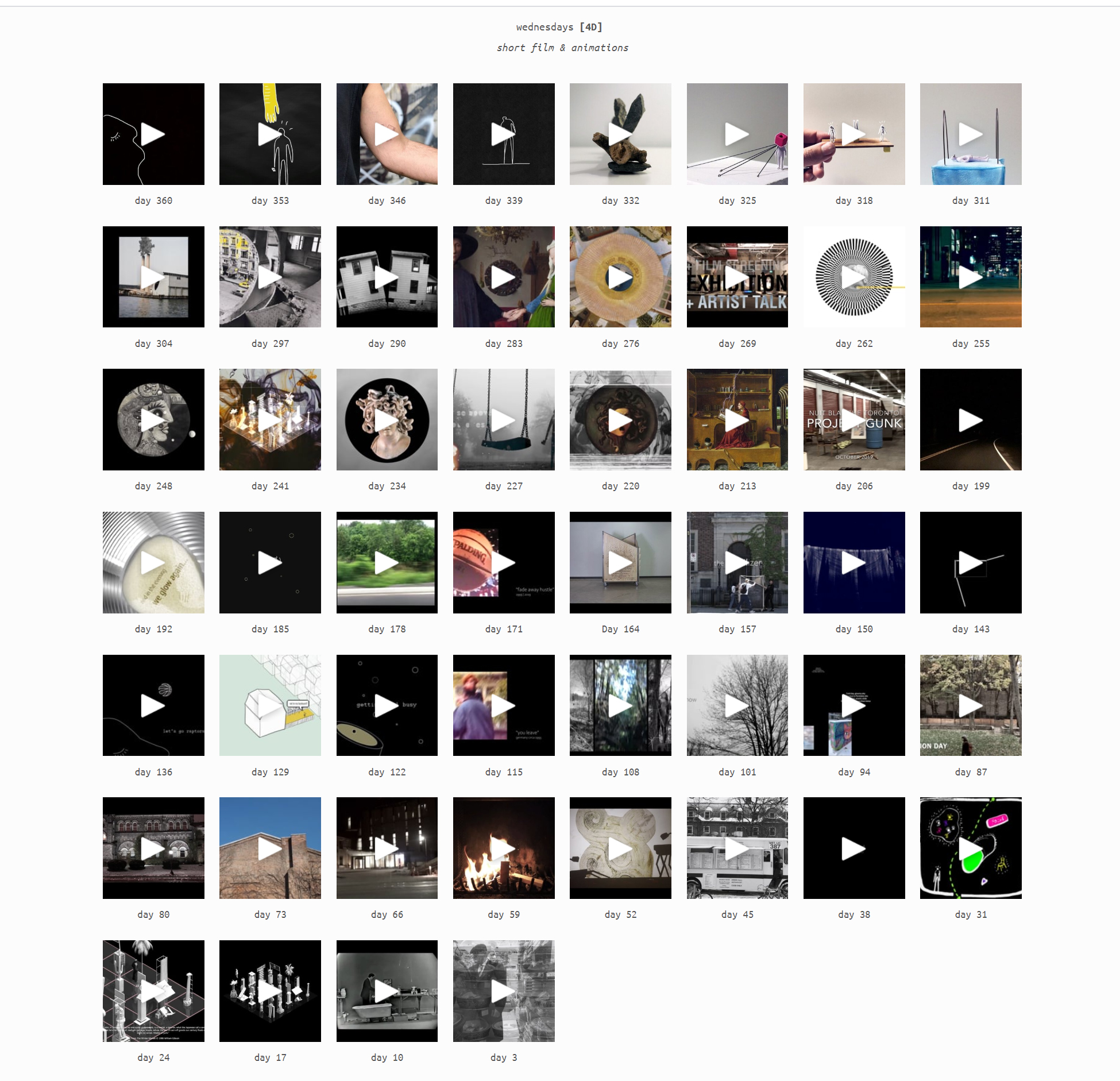 mondays [2D] - tuesdays [3D] - wednesdays [4D] - thursdays [mural] - fridays [writing] - saturdays [sound] - sundays [architecture]