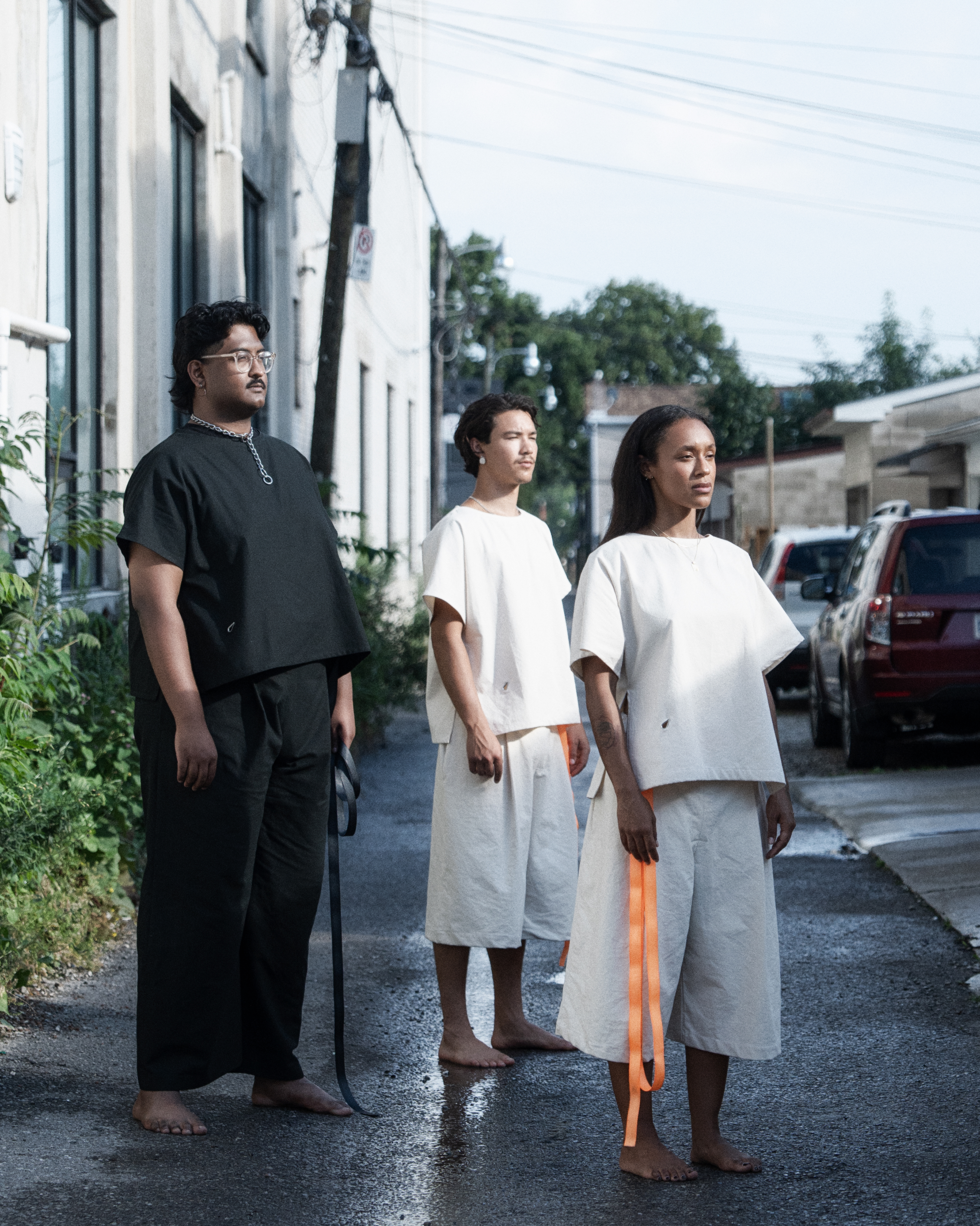 gender-neutral, baggy oversized fit, 100% cotton w/ nylon strap, 3 color options (item photos above only of Black w/ Black)