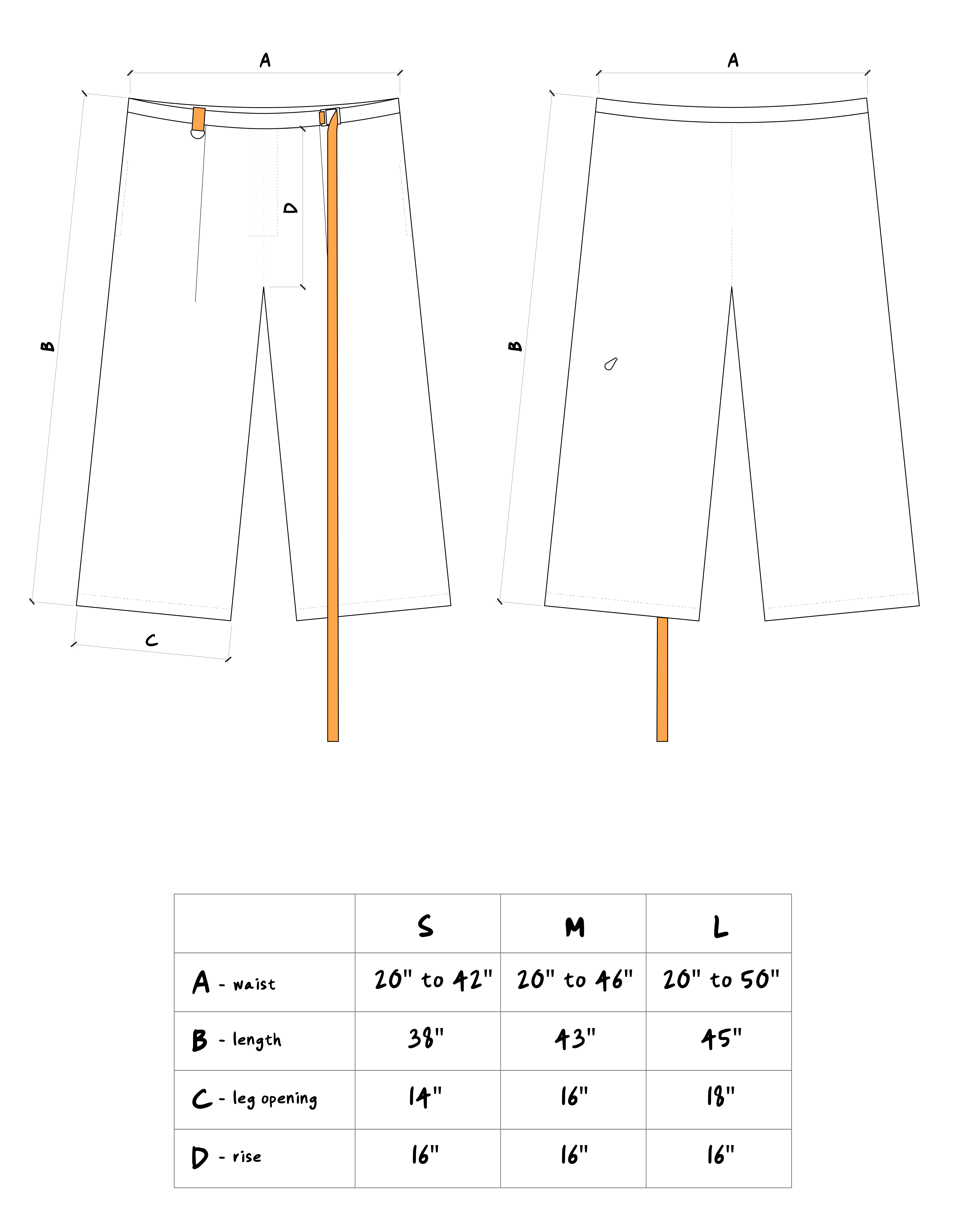 * waist sizes approximate, size according to how baggy/scrunchy you’d like the waistline to be